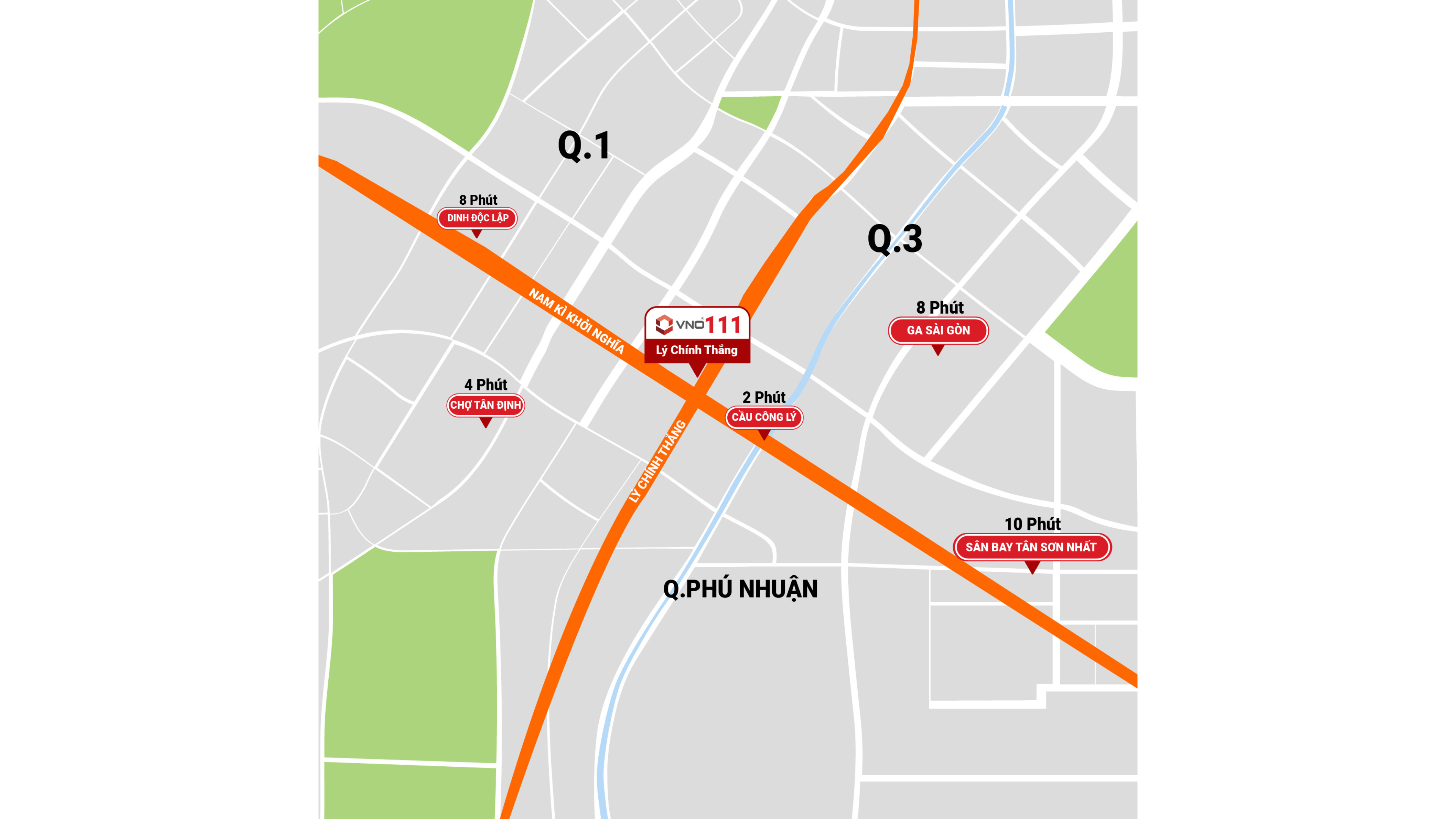 VNO 111 nằm trên trục đường huyết mạch Nam Kỳ Khởi Nghĩa, cầu nối giữa trung tâm Sài Gòn và sân bay Tân Sơn Nhất.