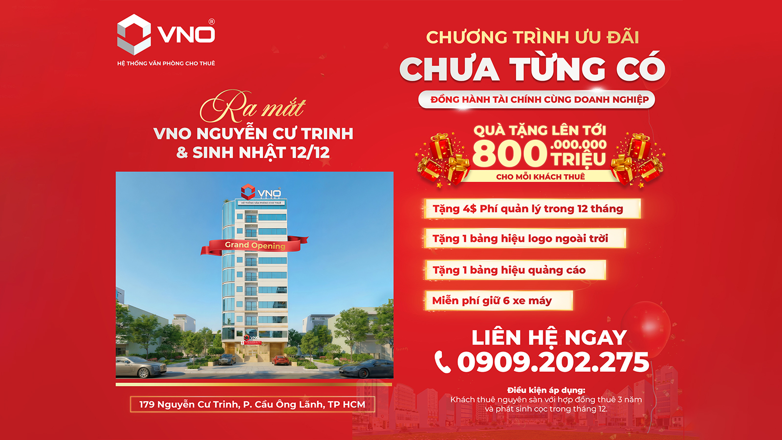 Tiếp nối thành công của tòa nhà VNO 111 Lý Chính Thắng khi đạt tỉ lệ lấp đầy hơn 90% chỉ sau 3 tháng tiếp nhận, ngày 20/11/2025 VNO chính thức đưa vào khai thác, quản lý vận hành tòa nhà 179 Nguyễn Cư Trinh, P. Cầu Ông Lãnh, TP.HCM.