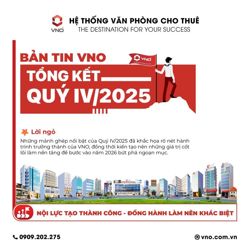 VNO trân trọng cảm ơn những người cộng sự đã đồng hành vượt qua mọi thăng trầm của năm 2025. Chúc chúng ta tiếp tục lớn lên từ những trải nghiệm đã được tôi luyện và bứt phá mạnh mẽ hơn trong năm mới 2026. Quý IV khép lại, hành trình 2025 cũng chính thức khép lại. VNO tự tin bước vào năm 2026 với tinh thần của một tập thể đủ nội lực để vươn xa hơn, đủ quyết tâm để mở rộng hơn và đủ gắn kết để đi cùng nhau lâu dài.