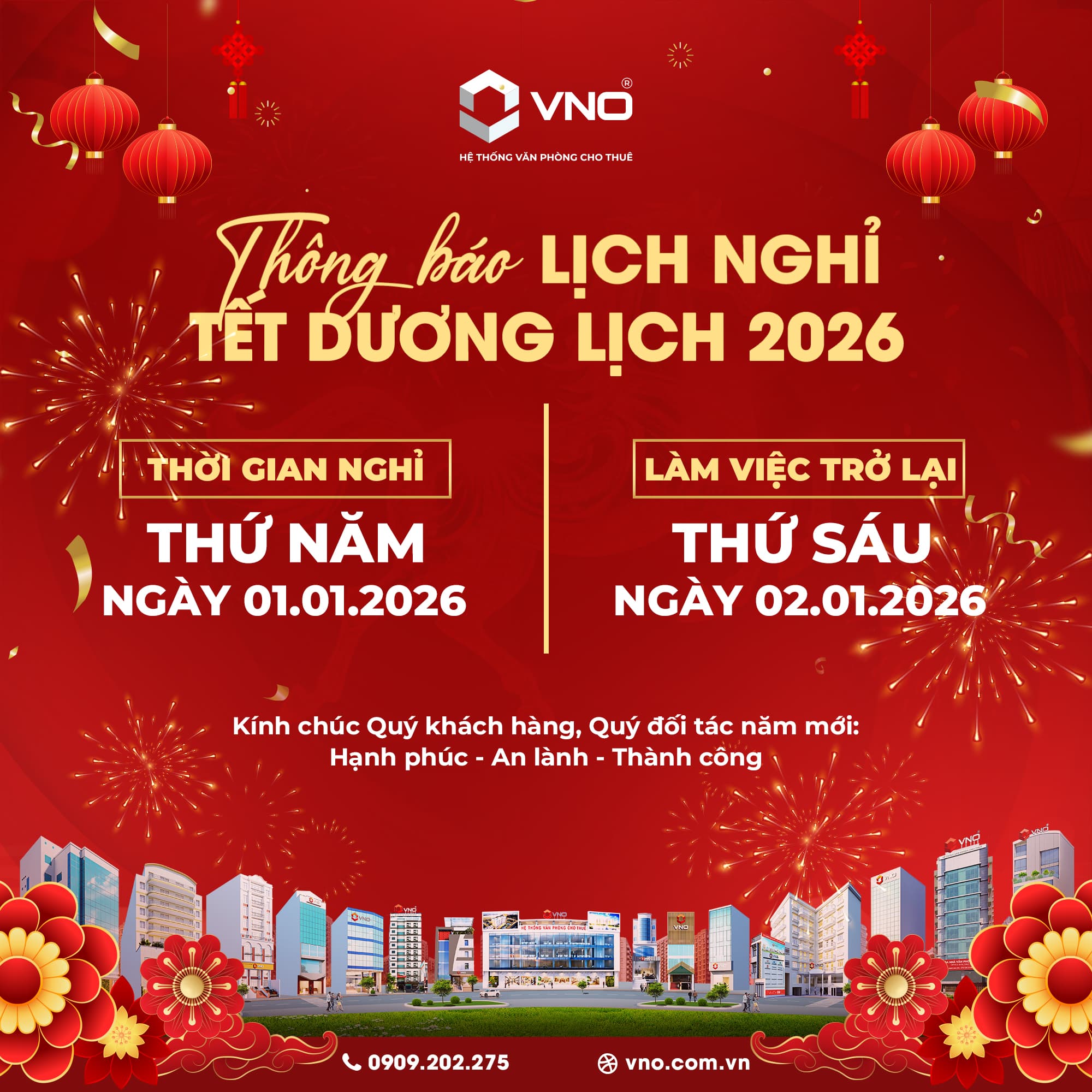 VNO chân thành cảm ơn Quý khách hàng và Quý đối tác đã đồng hành cùng chúng tôi trong suốt một năm qua. Để thuận tiện cho việc hỗ trợ tư vấn văn phòng nhanh chóng, hiệu quả, VNO xin thông báo đến Quý khách lịch nghỉ Tết dương lịch 2026 cụ thể như sau: